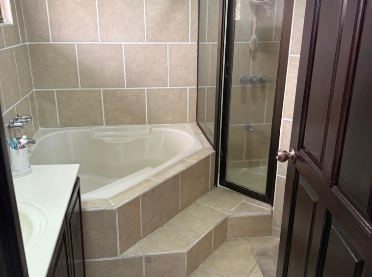 • Habitación principal con espacio para cama King, baño privado, jacuzzi y walk-in closet.
